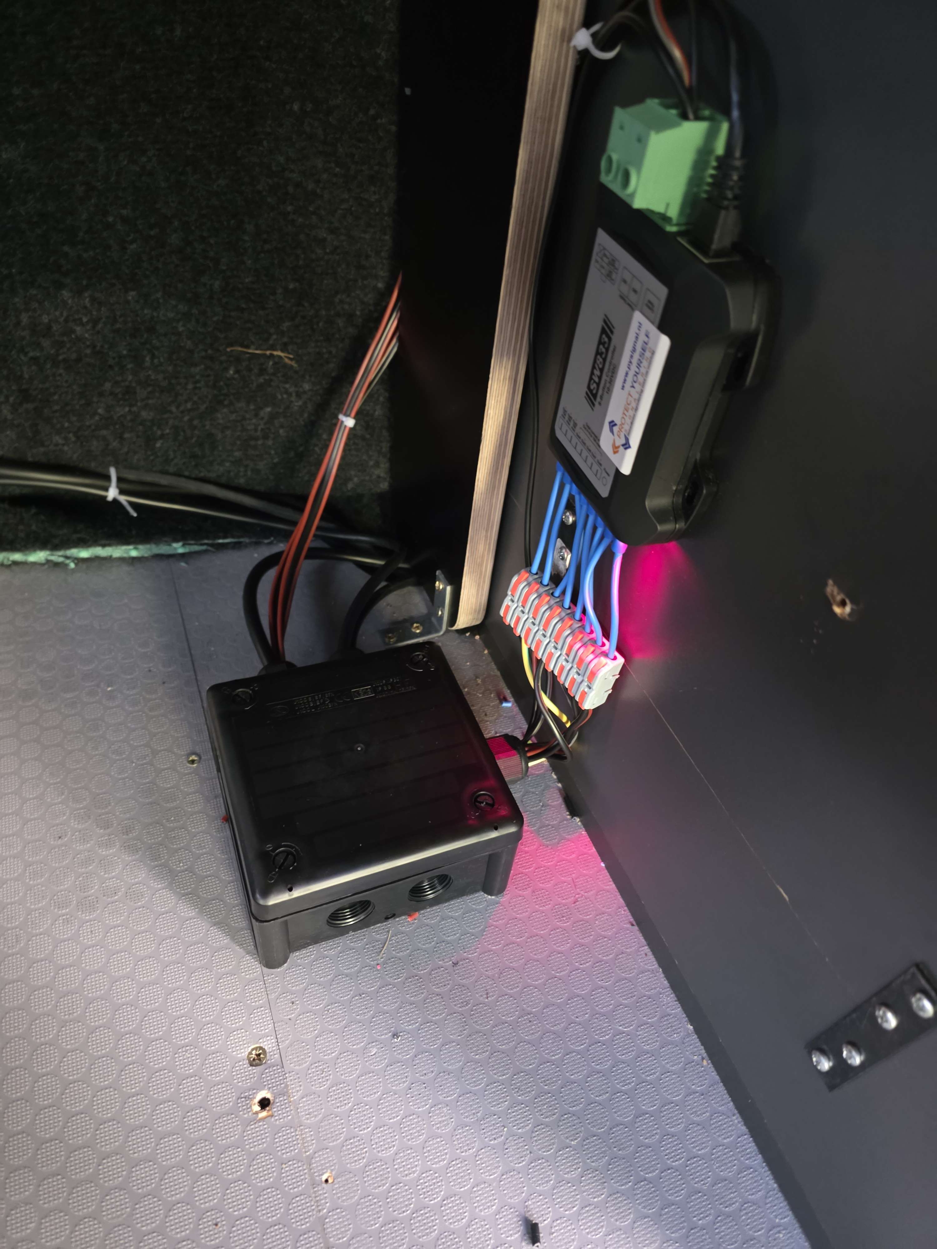 Daarnaast was er al een bestaande interieurinrichting aanwezig in de bus. Dit betekende dat we niet volledig opnieuw konden beginnen, maar juist moesten werken met de ruimte en indeling die al aanwezig was. Hierdoor moesten we op verschillende momenten creatief zijn met onze oplossingen om bekabeling, modules en bedieningspanelen netjes en logisch te integreren zonder afbreuk te doen aan het bestaande interieur.